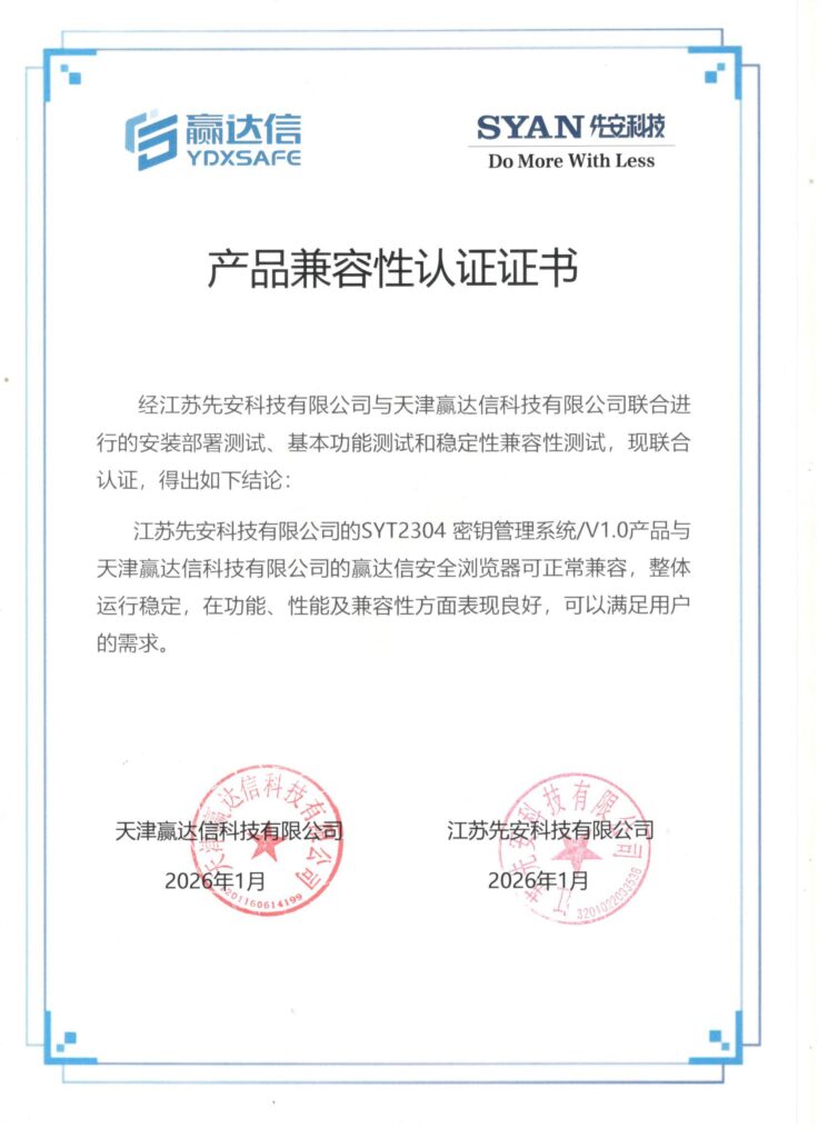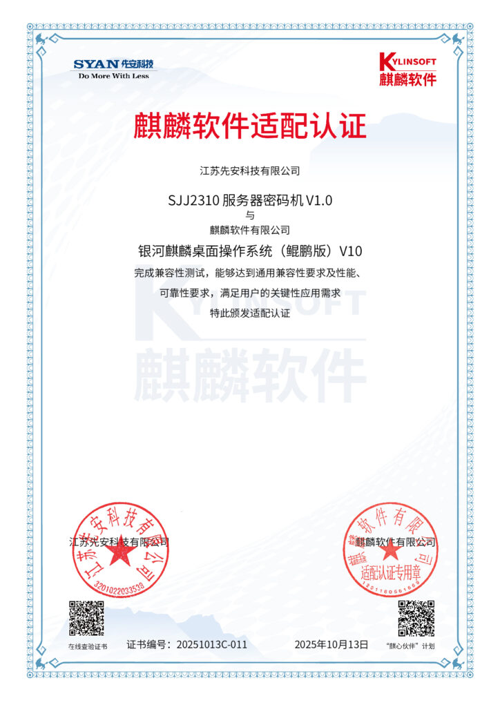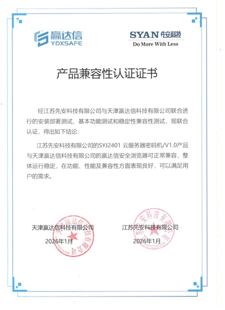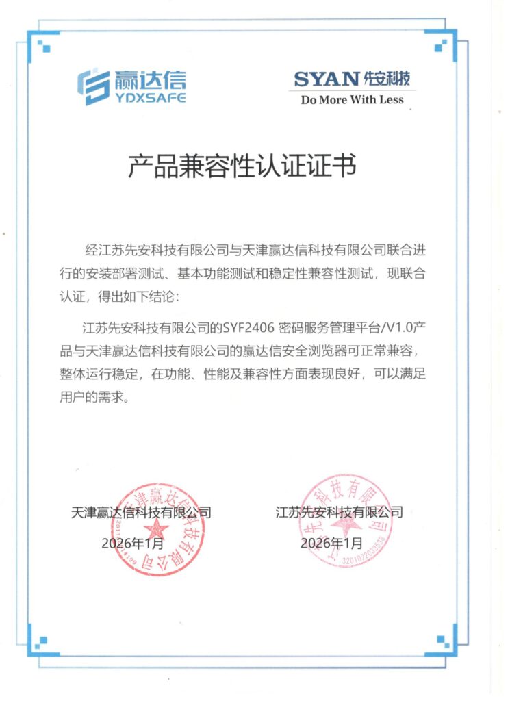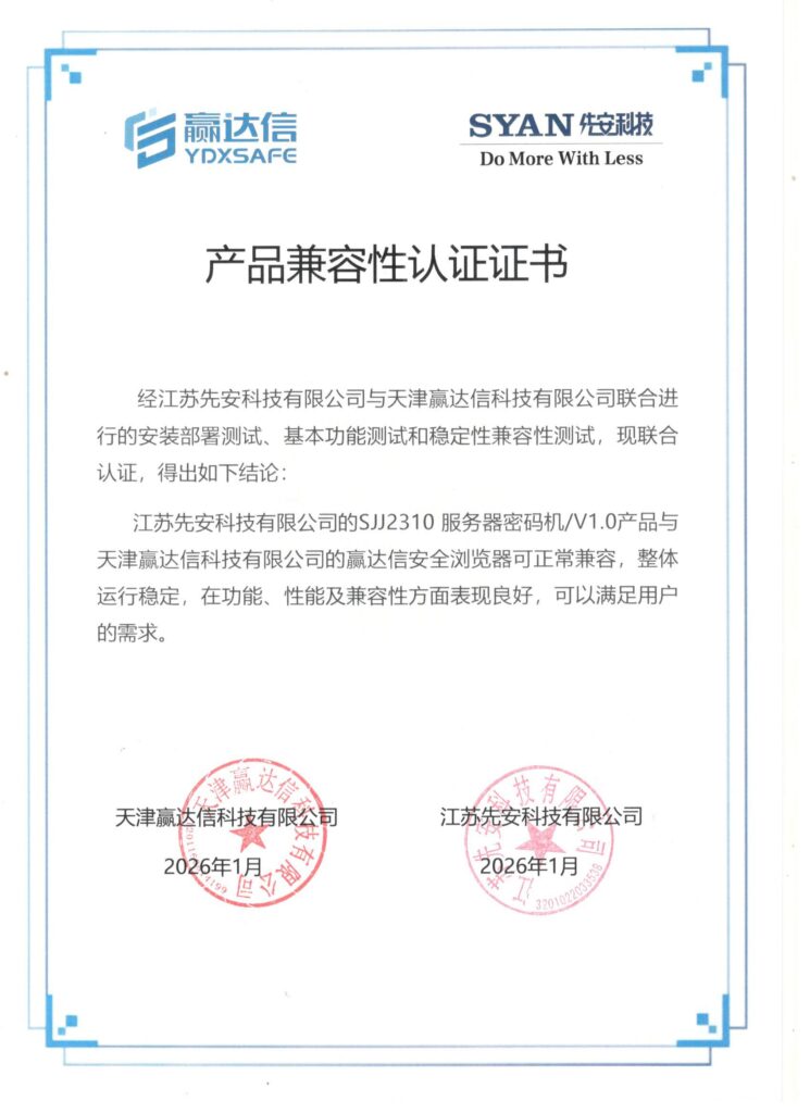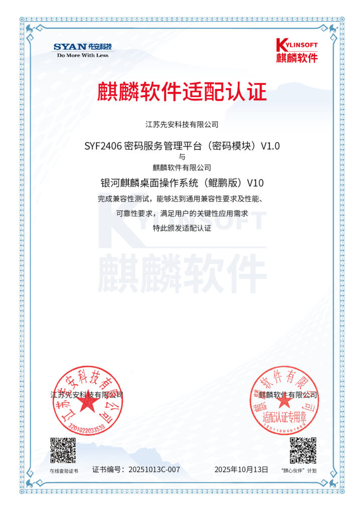 先安科技产品全部为自己独立开发,拥有完全自主的知识产权和相关专利,产品能力横跨几乎所有通用硬件平台,与所有国产CPU均已完成适配并取得适配证书。自创立以来,公司已获得17项已授权发明专利、62项软件著作权、累计获得26项商用密码产品认证证书。